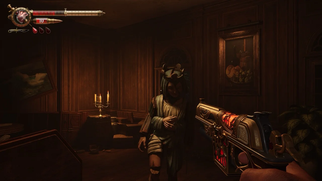 On paper, it sounds like a gimmick that might wear off. In practice, it drives almost every decision you make. Do you top up now and risk getting hit with low health? Do you stay conservative and try to line up cleaner shots? Do you use blood syringes to heal, or treat them as future bullets? That loop keeps the whole game alive, even in sections where level structure feels familiar.